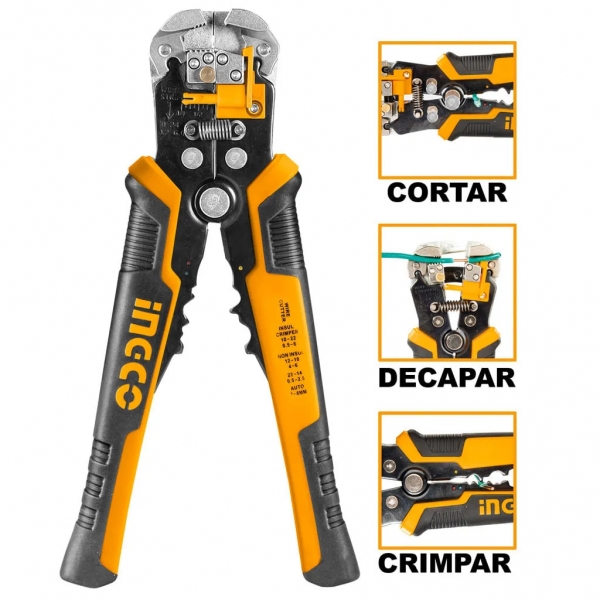 Alicate Automático 3 em 1 para Eletricista INGCO - Corte Decapagem e Crimpagem